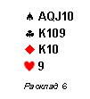 В раскладах 9 и 10 другие виды раскладных взяток. Здесь также высокая вероятность дополнительных взяток в трефе и целесообразно торговаться до контракта 8