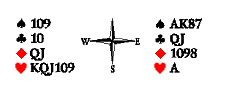 Ещё один пример, иллюстрирующий необходимость дополнительных коммуникаций между руками вистующих при наведении сюркупа.