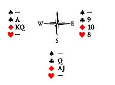 Расклад, казалось бы, был самый тривиальный, и Запад прикидывал, сколько бы взяток он взял на тройной распасовке: две бубны, две червы и минимум по одной в чёрных мастях.
