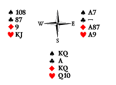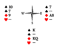 Козырь черва. Играет Юг. Ход Запада. Задача ставится такая: не дать Югу ни одной взятки.