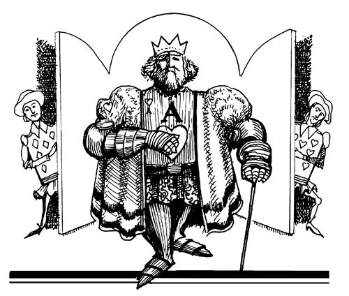 То ли этот опрометчивый заказ был сделан в пылу азарта, то ли Восток перебивал чей-то мизер, то ли игра была со скачками, то ли разыгрывающий надеялся, что не завистуют, — мотивы заказа этой сомнительной девятерной канули в Лету, но факт заказа история сохранила. За неимением лучшего, разыгрывающему приходится думать о том, как взять девять взяток, располагая теми ресурсами, которые есть. Существует ли возможность выиграть контракт? Строго говоря, при оценке ситуации на закрытых картах видны следующие возможности выиграть девятерную: либо пика лежит пополам, либо при раскладе 3:1 отложилась синглетная фигура. На самом деле, шансы не так уж плохи (может быть, у Востока и теплилась надежда на благоприятный расклад, когда он заказывал девятерную). Но после того как Юг завистовал и вистующие легли, надежда улетучилась.