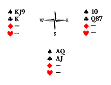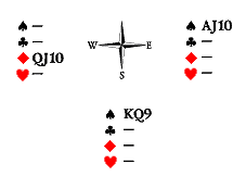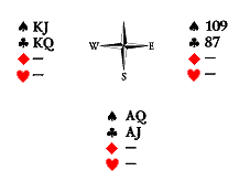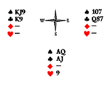 Известно, что у Юга нет козырей и пик, точно есть король треф и, вероятно, десятка треф, а также не менее двух карт в черве. Каких? В худшем случае, это AK, но может быть AQ или KQ.