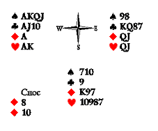 Условие: Юг прикупает на второй руке и имеет карту: