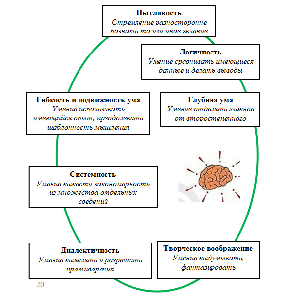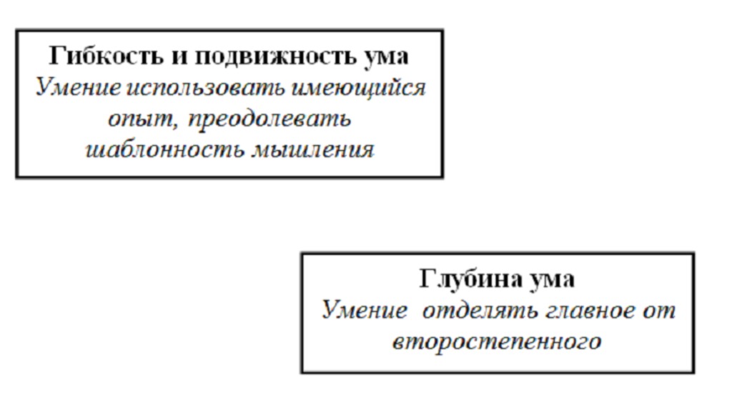 При решении этих несложных задач мы коснулись только некоторых качеств интеллекта. Более полная картина выглядит следующим образом.