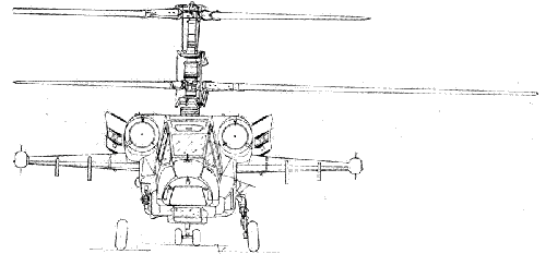 Ориентировочная схема возможных вариантов подвески вооружения на вертолете Ка-50 (составлена по материалам отечественной и зарубежной печати и рекламных данных фирмы).