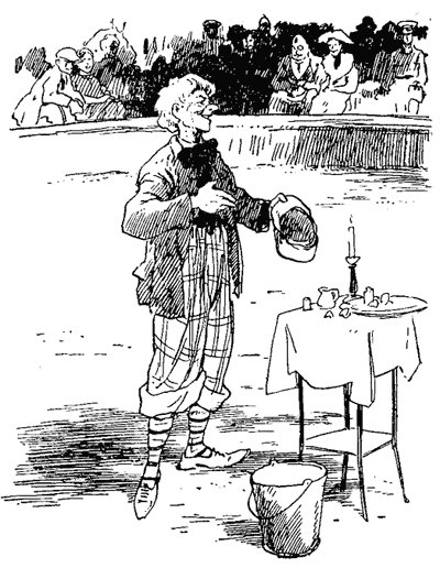 Отец и сын свернули на улицу, ведущую к цирку. У них начали спрашивать «лишнего билетика». Издалека слышалась музыка. Духовой оркестр один за другим играл военные марши и вальсы. Вход в сад и сам цирк были украшены разноцветными лампочками. На цирке развевался цветной флаг.
